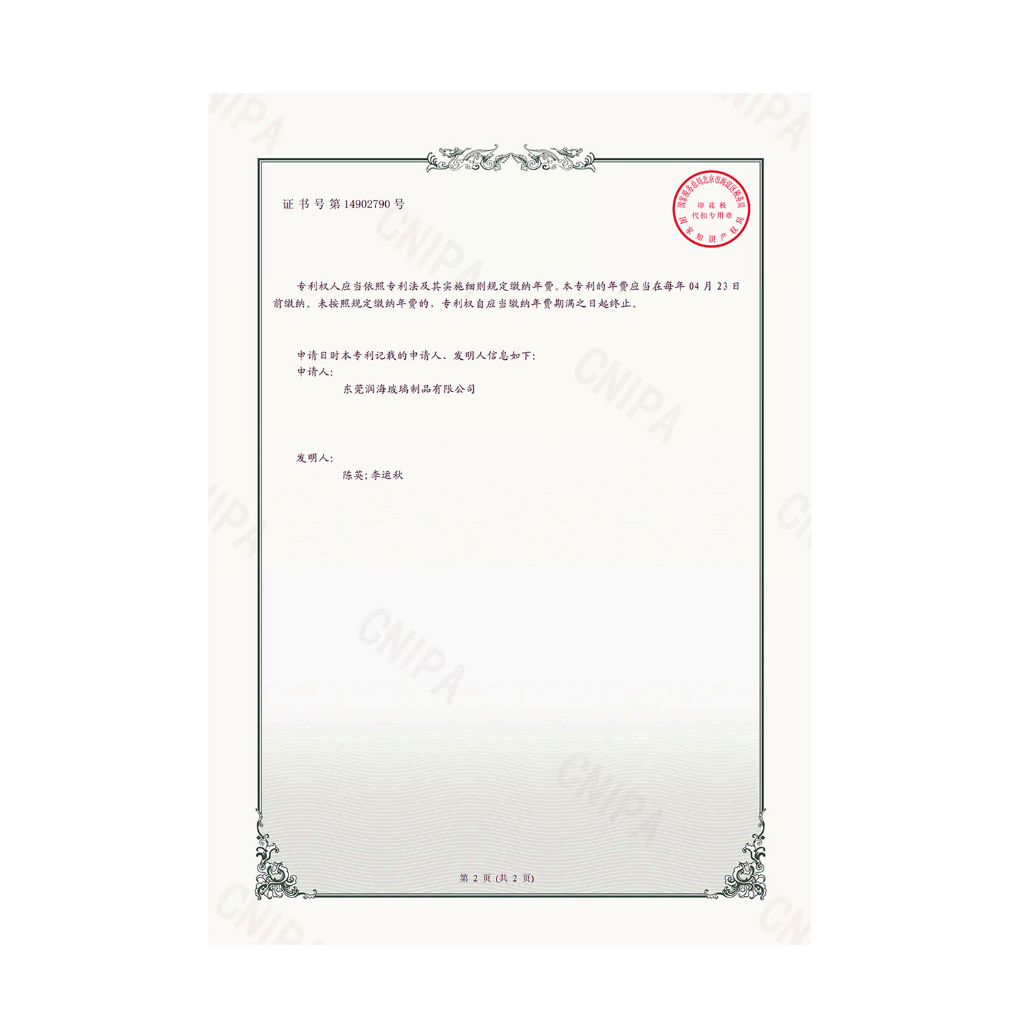 • 專利證書